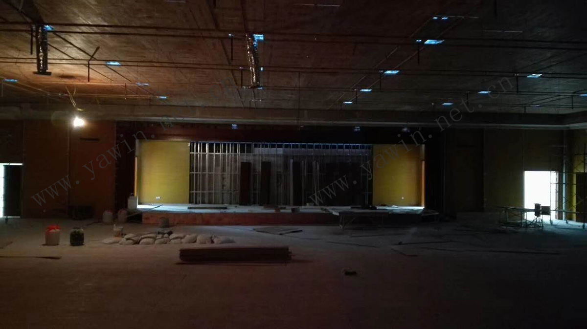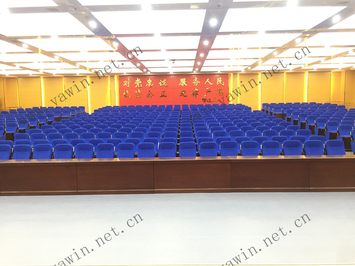 市政府报告厅项目面积一千多平方,会场主音箱选用YAWIN雅祺的XL系列专业线阵音箱吊挂舞台两侧,侧面采用VF系列高端工程娱乐音箱